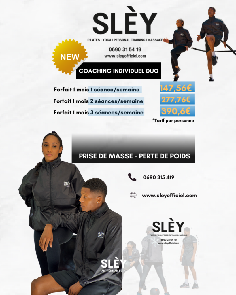 Forfait coachings infividuels ou pack de séances.Séances possible au studio, à domicile ou en extérieur. De nombreuses communes de Guadeloupe sont desservies.Nous sommes joignable par téléphone et WhatsApp par le lien ci-dessous : Whatsapp