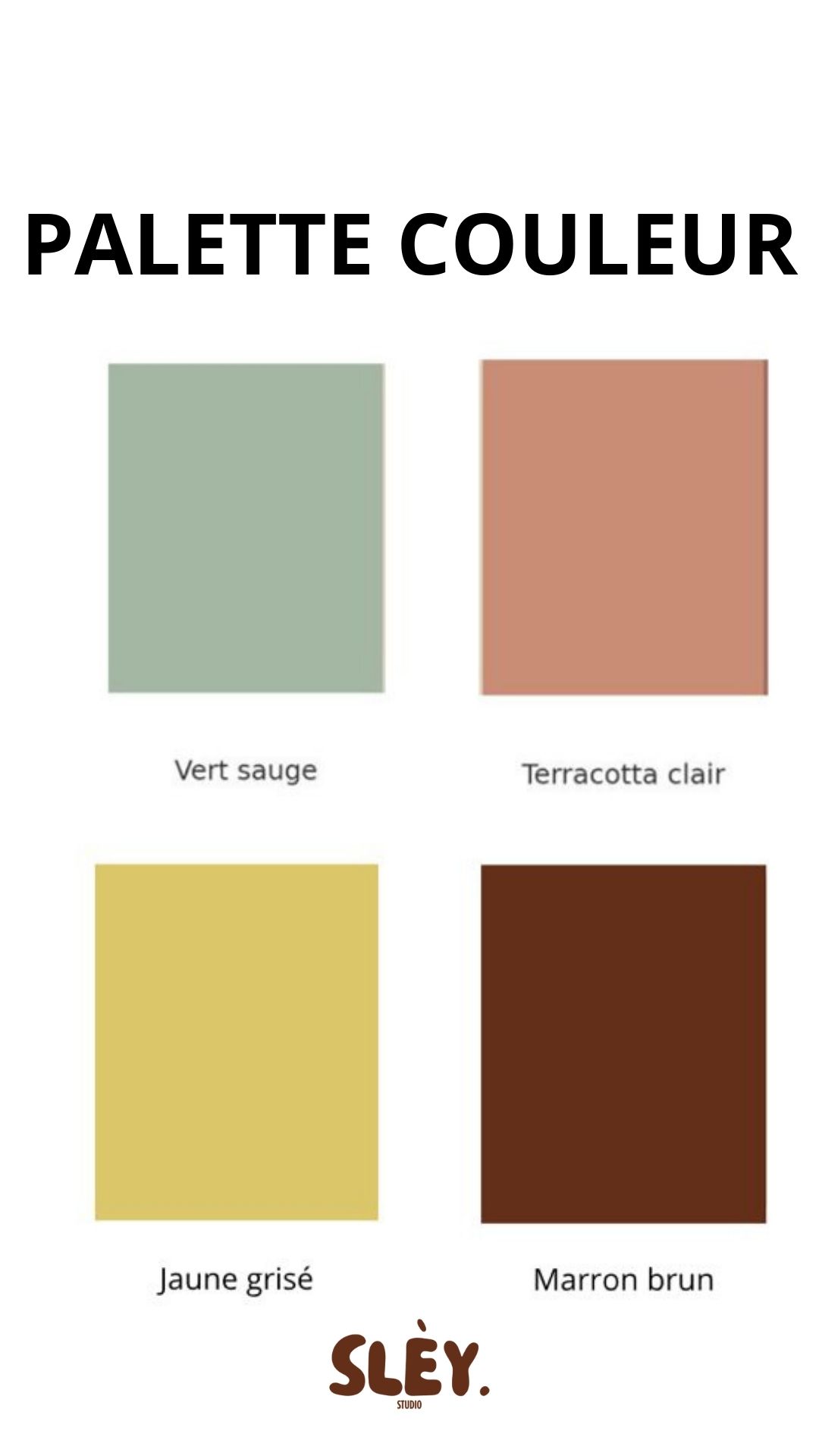 Marron brun, Terracotta claire, vert sauge, jaune grisé
